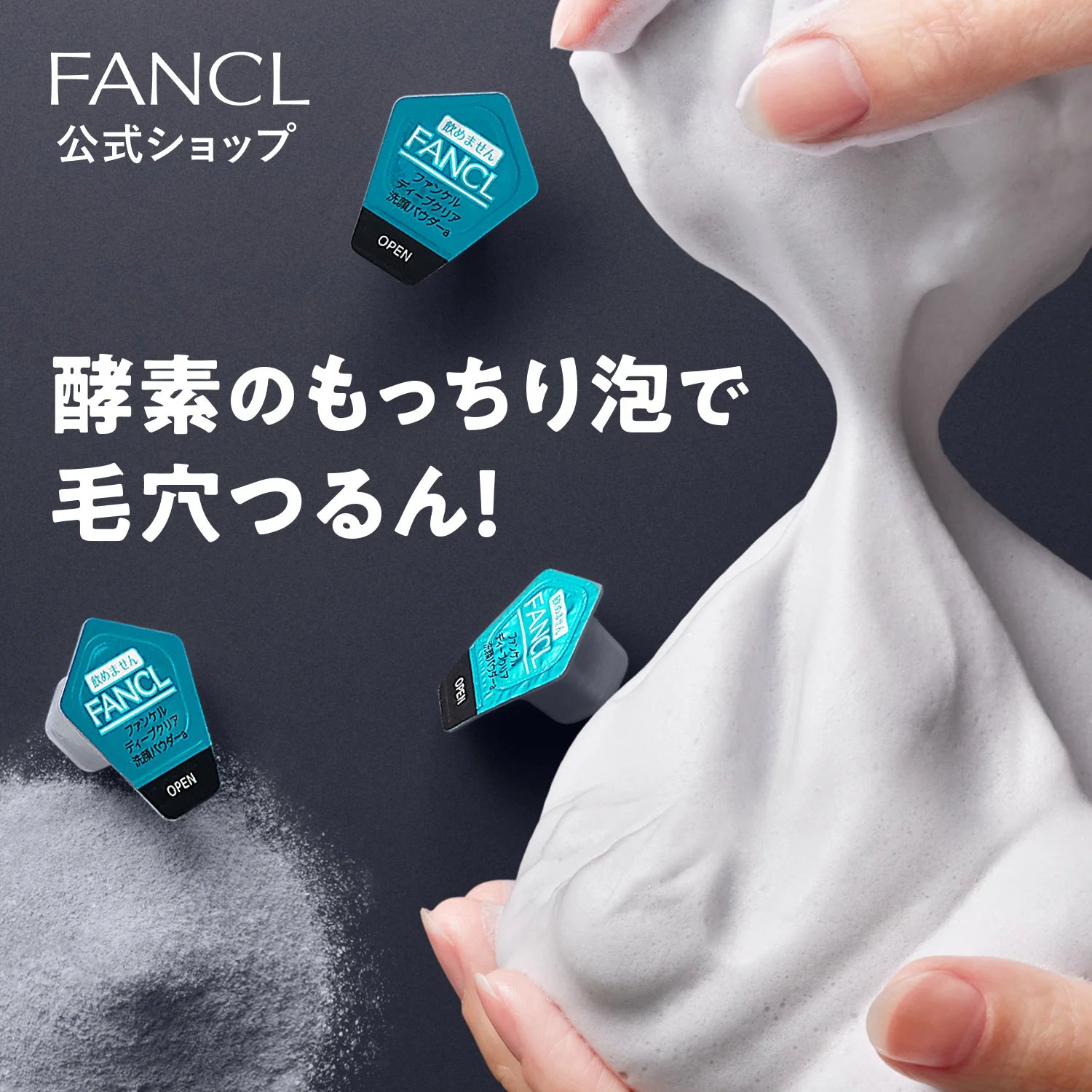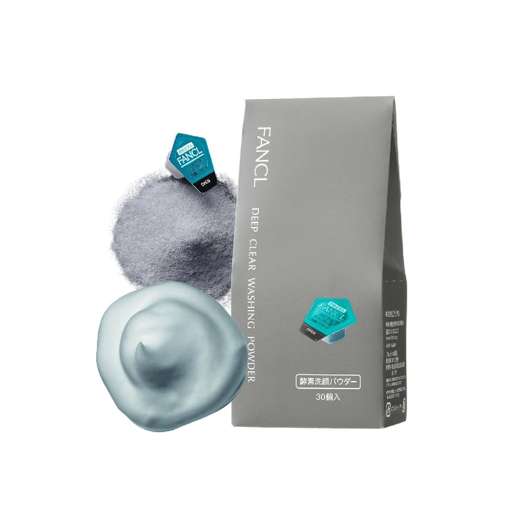 FANCL Deep Clear Washing Powder is a facial wash powder that clears out all of the pores but leaves the skin hydrated. The featured Protease enzymes, coal, and absorbing mud ingredients actively gets rid of the dirt, darkness, and dead skin cells out of the pores. Sugar, hyaluronic acid, and the brand's original amino acid cleansing component prevent moisture loss while clarifying and brightening the skintone. A rich and fine cushion foam formulation that lathers quick and easy that does not stress the skin or require harsh rubbing. With a balanced blend of ingredients, this cleansing powder can penetrate and dissolve any stubborn makeup, leaving no leftovers. The skin becomes smooth, soft and radiant after use.