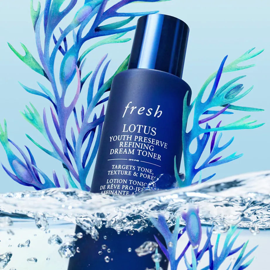Powered by rainbow algae extract, this gentle-yet-effective toner works beneath the skin’s surface to help visibly reduce dark spots while respecting skin’s natural tone. Infused with succinic acid and Super Lotus, the liquid formula absorbs quickly with a comforting peach scent.
