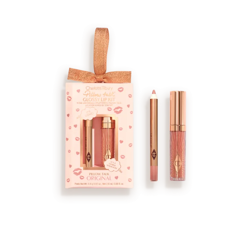 Darlings, Pillow Talk lips are happiness in a tube! The whole world is obsessed with Pillow Talk, and this travel-sized lip kit is an easy way to gift Pillow Talk magic to someone you love! Perfectly paired and finished with a ready-to-gift ribbon loop, my Pillow Talk Mini Glossy Lip Duo belongs underneath every tree!