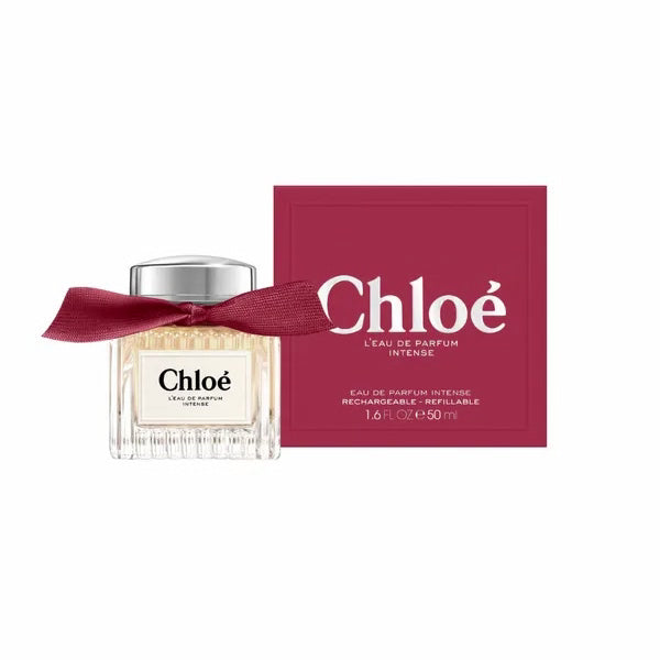 L’Eau de Parfum Intense is presented in Chloé’s emblematic pleated bottle with a sleek new black and ecru label. The bottle is tied with a deep garnet ribbon, echoing the fragrance's composition and the flower at its heart.