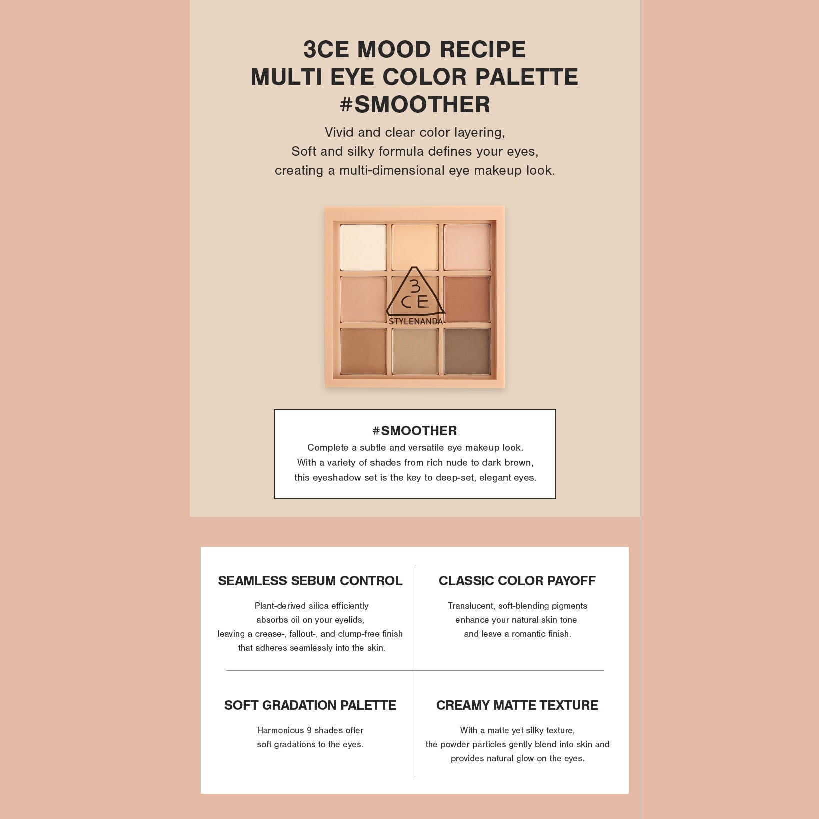 "9 mistake-free shades" that are delicately curated in a range of nuanced colors and a variety of texture. Offering endless looks to mix and match, from easy everyday look to a special night out look, create a variety of moods with one palette. Fine, soft texture with buildable natural payoff that glides on to lids effortlessly.